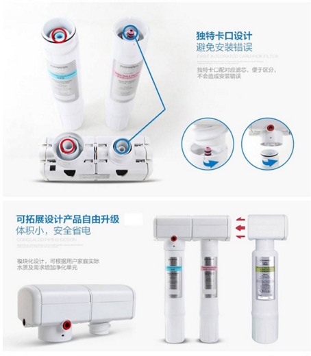 一体式卡结滤芯,水流自动切断设计,换滤芯不需关掉水源,安装维护简单。